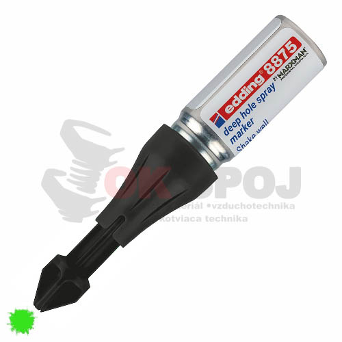 Značkovač v spreji edding® 8870 s jedinečným patentovaným pumpovacím mechanizmom na netrvalé označenie na ťažko dostupných miestach. Individuálne tvarovaná tryska umožňuje označovanie cez otvory až do hĺbky 50 mm priemeru 3-13 mm. Značkovač je možné používať z akéhokoľvek uhla a výšky, dokonca aj zhora a z boku. Vhodný na označovanie takmer všetkých povrchov. Neónovo zelená, kriedová farba sa dá jednoducho zotrieť suchou utierkou bez akýchkoľvek zvyškov. Popisovač nemá uzáver a preto sa ľahko používa jednou rukou. Bezpečnostný zámok chráni pred náhodnou aplikáciou. Značkovač edding® 8870 vystačí na cca 250 označení.